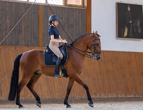 Obelix ist im Oktober 2022 bei uns eingezogen. Er ist ein wunderschöner, junger Lusitanowallach mit einem wunderbaren Charakter. Er ist absolut klar im Kopf, sehr talentiert, immer arbeitswillig und offen für Neues. In der Ausbildung ist Obelix mittlerweile weit fortgeschritten, er beherrscht alle Seitengänge in allen Gangarten, springt fliegende Wechsel und ist andiagonalisiert. Ich bin unglaublich dankbar für dieses tolle Pferd. Mit ihm kann ich mich weiterentwickeln und ganz viel Neues dazulernen.